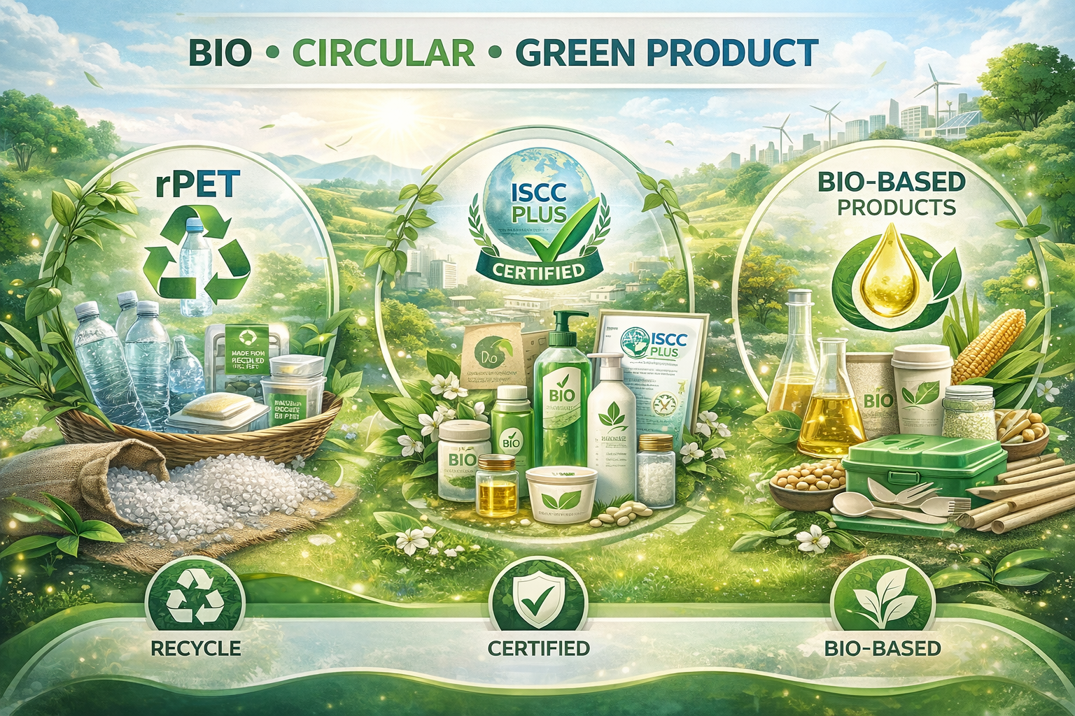 (rPET, ISCC plus certified products, Bio-based products)